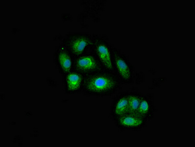 • Immunofluorescent analysis of HepG2 cells using CSB-PA06719A0Rb at dilution of 1:100 and Alexa Fluor 488-congugated AffiniPure Goat Anti-Rabbit IgG(H+L)