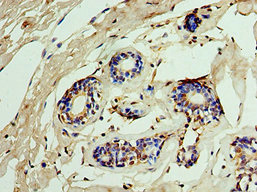 • Immunohistochemistry of paraffin-embedded human breast cancer using CSB-PA011701ESR2HU at dilution of 1:100