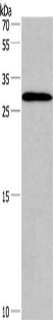 Gel: 10%SDS-PAGE, Lysate: 40 μg, Lane: Human testis tissue, Primary antibody: CSB-PA298832(IRAK1BP1 Antibody) at dilution 1/350, Secondary antibody: Goat anti rabbit IgG at 1/8000 dilution, Exposure time: 3 minutes