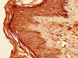 Immunohistochemistry of paraffin-embedded human skin tissue using CSB-PA011822LA01HU at dilution of 1:100