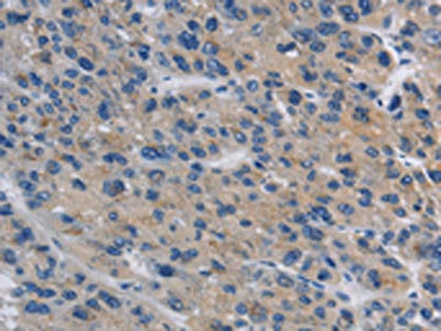 • The image on the left is immunohistochemistry of paraffin-embedded Human liver cancer tissue using CSB-PA108283(ITGA11 Antibody) at dilution 1/20, on the right is treated with synthetic peptide. (Original magnification: ×200)
