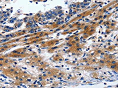 • The image on the left is immunohistochemistry of paraffin-embedded Human liver cancer tissue using CSB-PA932598(ITGAL Antibody) at dilution 1/20, on the right is treated with synthetic peptide. (Original magnification: ×200)