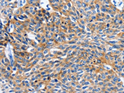 • The image on the left is immunohistochemistry of paraffin-embedded Human esophagus cancer tissue using CSB-PA932598(ITGAL Antibody) at dilution 1/20, on the right is treated with synthetic peptide. (Original magnification: ×200)