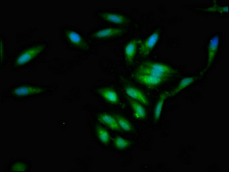 Immunofluorescent analysis of Hela cells using CSB-PA011922LA01HU at dilution of 1:100 and Alexa Fluor 488-congugated AffiniPure Goat Anti-Rabbit IgG(H+L)