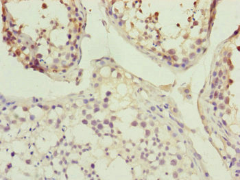 Immunohistochemistry of paraffin-embedded human testis tissue using CSB-PA882183ESR2HU at dilution of 1:100