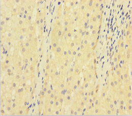 • Immunohistochemistry of paraffin-embedded human liver cancer using CSB-PA07279A0Rb at dilution of 1:100