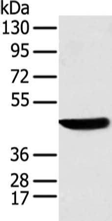 • Gel: 8%SDS-PAGE, Lysate: 40 μg, Lane: K562 cell, Primary antibody: CSB-PA243997(KRT18 Antibody) at dilution 1/200 dilution, Secondary antibody: Goat anti rabbit IgG at 1/8000 dilution, Exposure time: 5 seconds