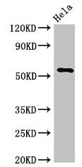 Lane 2: CSB-PA012564LA01HU (8μg) + HepG2 whole cell lysate (500μg)