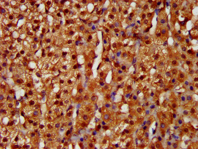 IHC image of CSB-PA887112LA01HU diluted at 1:200 and staining in paraffin-embedded human adrenal gland tissue performed on a Leica BondTM system. After dewaxing and hydration, antigen retrieval was mediated by high pressure in a citrate buffer (pH 6.0). Section was blocked with 10% normal goat serum 30min at RT. Then primary antibody (1% BSA) was incubated at 4°C overnight. The primary is detected by a biotinylated secondary antibody and visualized using an HRP conjugated SP system.