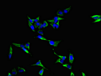 Immunofluorescent analysis of Hela cells using CSB-PA04629A0Rb at dilution of 1:100 and Alexa Fluor 488-congugated AffiniPure Goat Anti-Rabbit IgG(H+L)