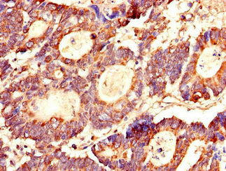 Immunohistochemistry of paraffin-embedded human colon cancer using CSB-PA04629A0Rb at dilution of 1:100