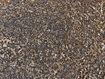 The image on the left is immunohistochemistry of paraffin-embedded Human tonsil tissue using CSB-PA088510(LEF1 Antibody) at dilution 1/20, on the right is treated with fusion protein. (Original magnification: ×200)