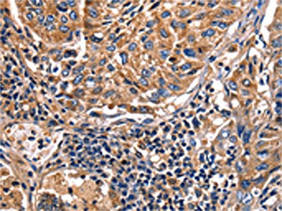 • The image on the left is immunohistochemistry of paraffin-embedded Human lung cancer tissue using CSB-PA130656(LGALS8 Antibody) at dilution 1/50, on the right is treated with fusion protein. (Original magnification: ×200)