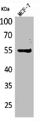 • Western Blot analysis of MCF7 cells using CD85g Polyclonal Antibody