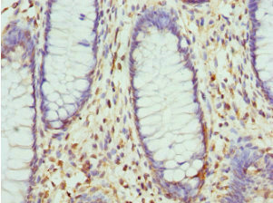 Immunohistochemistry of paraffin-embedded human colon cancer using CSB-PA012955ESR2HU at dilution of 1:100