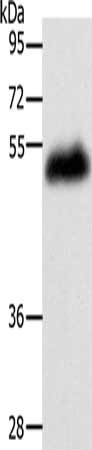 Gel: 10%SDS-PAGE, Lysate: 60 μg, Lane: Human leiomyosarcoma tissue, Primary antibody: CSB-PA061510(LOX Antibody) at dilution 1/400, Secondary antibody: Goat anti rabbit IgG at 1/8000 dilution, Exposure time: 20 seconds