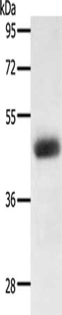 • Gel: 12%SDS-PAGE, Lysate: 40 μg, Lane: HT29 cells, Primary antibody: CSB-PA281843(LPAR4 Antibody) at dilution 1/300, Secondary antibody: Goat anti rabbit IgG at 1/8000 dilution, Exposure time: 2 minutes