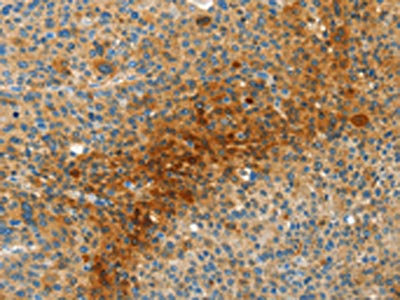 The image on the left is immunohistochemistry of paraffin-embedded Human liver cancer tissue using CSB-PA903964(MAF Antibody) at dilution 1/50, on the right is treated with synthetic peptide. (Original magnification: ×200)