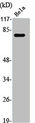 • Western Blot analysis of HELA cells using Tau Polyclonal Antibody