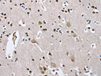 • The image on the left is immunohistochemistry of paraffin-embedded Human brain tissue using CSB-PA029620(MAPT Antibody) at dilution 1/40, on the right is treated with synthetic peptide. (Original magnification: ×200)