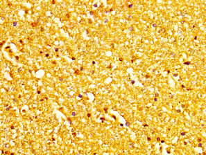 IHC image of CSB-PA013585LA01HU diluted at 1:200 and staining in paraffin-embedded human brain tissue performed on a Leica BondTM system. After dewaxing and hydration, antigen retrieval was mediated by high pressure in a citrate buffer (pH 6.0). Section was blocked with 10% normal goat serum 30min at RT. Then primary antibody (1% BSA) was incubated at 4°C overnight. The primary is detected by a biotinylated secondary antibody and visualized using an HRP conjugated SP system.