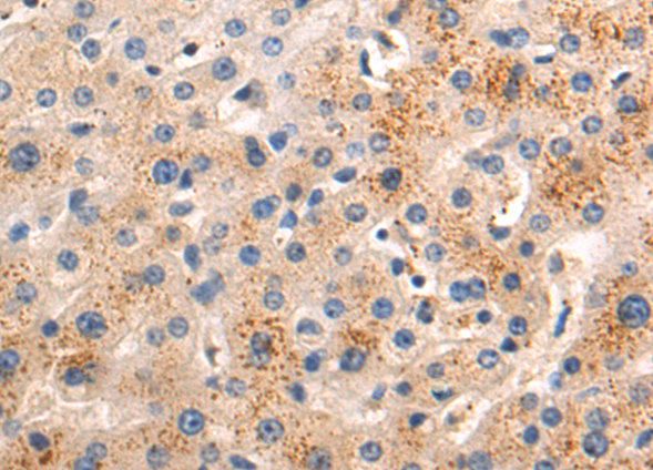 The image on the left is immunohistochemistry of paraffin-embedded Human liver cancer tissue using CSB-PA196650 (MFSD2A Antibody) at dilution 1/50, on the right is treated with synthetic peptide. (Original magnification: ×200)