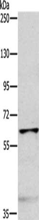 • Gel: 6%SDS-PAGE, Lysate: 40 μg, Lane: Mouse muscle tissue, Primary antibody: CSB-PA189164(MYLK2 Antibody) at dilution 1/1000, Secondary antibody: Goat anti rabbit IgG at 1/8000 dilution, Exposure time: 10 minutes