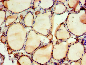 Immunohistochemistry of paraffin-embedded human thyroid tissue using CSB-PA614899ESR2HU at dilution of 1:100