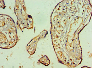 Immunohistochemistry of paraffin-embedded human placenta tissue using CSB-PA614899ESR2HU at dilution of 1:100