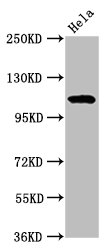 Lane 2: CSB-PA863939LA01HU (6μg) + Hela whole cell lysate (1mg)