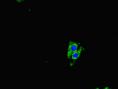 Immunofluorescent analysis of Hela cells using CSB-PA852917LA01HU at dilution of 1:100 and Alexa Fluor 488-congugated AffiniPure Goat Anti-Rabbit IgG(H+L)