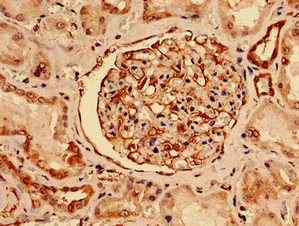 • Immunocytochemistry analysis of human kidney tissue using CSB-PA015713YA01HU at dilution of 1:100