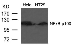 Western blot analysis of extracts from HT29 cells using NFkB-p100(Ab-866) Antibody.