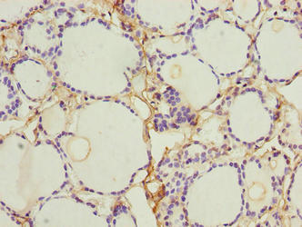 Immunohistochemistry of paraffin-embedded human thyroid tissue using CSB-PA885775LA01HU at dilution of 1:100
