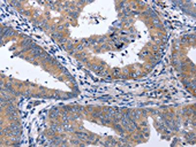 • The image on the left is immunohistochemistry of paraffin-embedded Human cervical cancer tissue using CSB-PA447744(NPPB Antibody) at dilution 1/40, on the right is treated with synthetic peptide. (Original magnification: ×200)