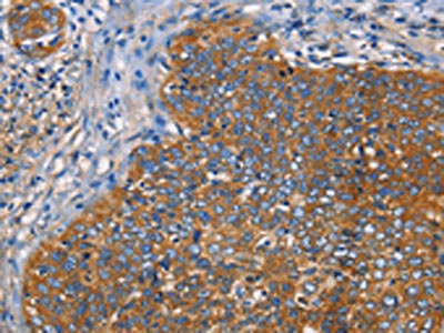 The image on the left is immunohistochemistry of paraffin-embedded Human cervical cancer tissue using CSB-PA564996(NT5E Antibody) at dilution 1/40, on the right is treated with fusion protein. (Original magnification: ×200)