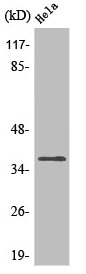 • Western Blot analysis of HepG2 cells using Olfactory receptor 4Q3 Polyclonal Antibody