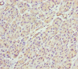 Immunohistochemistry of paraffin-embedded human pancreatic tissue using CSB-PA890765ESR1HU at dilution of 1:100