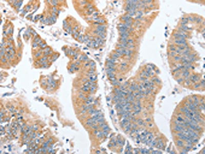 • The image on the left is immunohistochemistry of paraffin-embedded Human colon cancer tissue using CSB-PA530130(PARD6A Antibody) at dilution 1/60, on the right is treated with fusion protein. (Original magnification: ×200)