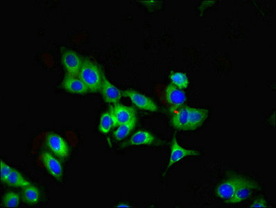 • Immunofluorescent analysis of Hela cells using CSB-PA03729A0Rb at dilution of 1:100 and Alexa Fluor 488-congugated AffiniPure Goat Anti-Rabbit IgG(H+L)