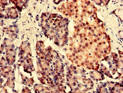 • Immunohistochemistry analysis of human pancreatic tissue using CSB-PA03729A0Rb at dilution of 1:100