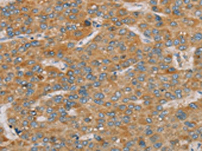 The image on the left is immunohistochemistry of paraffin-embedded Human liver cancer tissue using CSB-PA442571(PARL Antibody) at dilution 1/25, on the right is treated with fusion protein. (Original magnification: ×200)