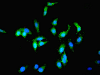 • Immunofluorescent analysis of Hela cells using CSB-PA017613LA01HU at dilution of 1:100 and Alexa Fluor 488-congugated AffiniPure Goat Anti-Rabbit IgG(H+L)