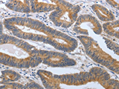 • The image on the left is immunohistochemistry of paraffin-embedded Human colon cancer tissue using CSB-PA285011(PGR Antibody) at dilution 1/30, on the right is treated with synthetic peptide. (Original magnification: ×200)