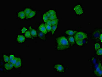 Immunofluorescent analysis of PC-3 cells using CSB-PA03255A0Rb at dilution of 1:100 and Alexa Fluor 488-congugated AffiniPure Goat Anti-Rabbit IgG(H+L)