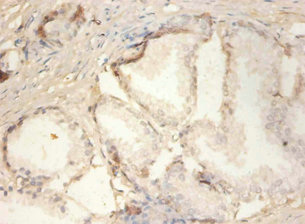 • Immunohistochemistry of paraffin-embedded human prostate tissue using CSB-PA11209A0Rb at dilution of 1:100