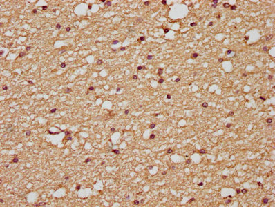 IHC image of CSB-PA07505A0Rb diluted at 1:200 and staining in paraffin-embedded human brain tissue performed on a Leica BondTM system. After dewaxing and hydration, antigen retrieval was mediated by high pressure in a citrate buffer (pH 6.0). Section was blocked with 10% normal goat serum 30min at RT. Then primary antibody (1% BSA) was incubated at 4°C overnight. The primary is detected by a biotinylated secondary antibody and visualized using an HRP conjugated SP system.
