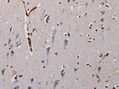 • The image on the left is immunohistochemistry of paraffin-embedded Human brain tissue using CSB-PA697082(PLCB3 Antibody) at dilution 1/40, on the right is treated with synthetic peptide. (Original magnification: ×200)