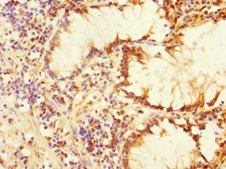 Immunohistochemistry of paraffin-embedded human testis tissue using CSB-PA880972ESR1HU at dilution of 1:100