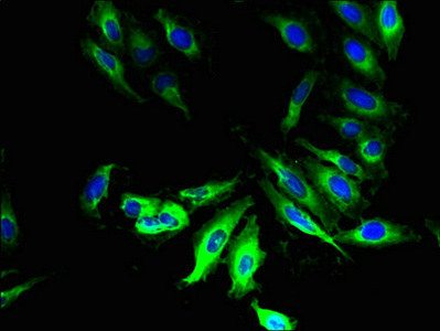 • Immunofluorescent analysis of Hela cells using CSB-PA836219HA01HU at dilution of 1:100 and Alexa Fluor 488-congugated AffiniPure Goat Anti-Rabbit IgG(H+L)